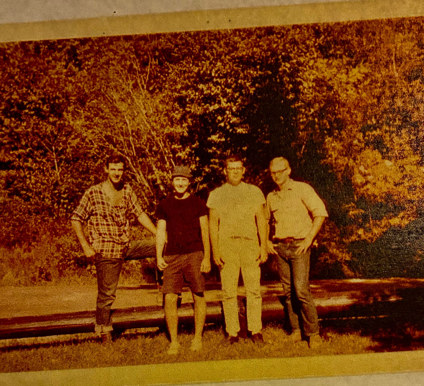 This grainy pic from summers 1962 or 63, four guys working for the U S Forest Service in the Bitterroot Range on the Idaho Panhandle. Left to right, Hoke , Gary, me, Jimbo.